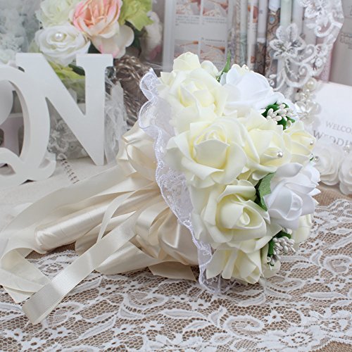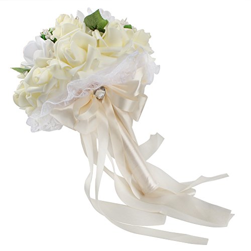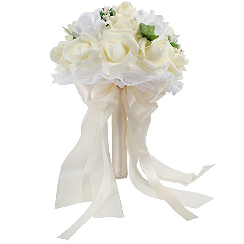 OurWarmウェディングブーケ ブーケ 花嫁 ブライダル ブーケ 結婚式 花嫁 披露宴 造花 バラ 花束 アイボリー色