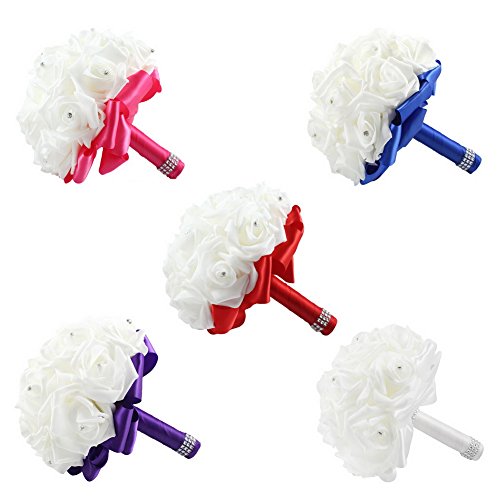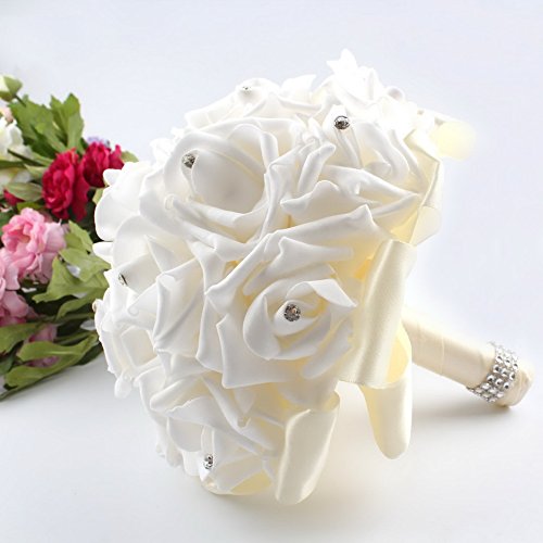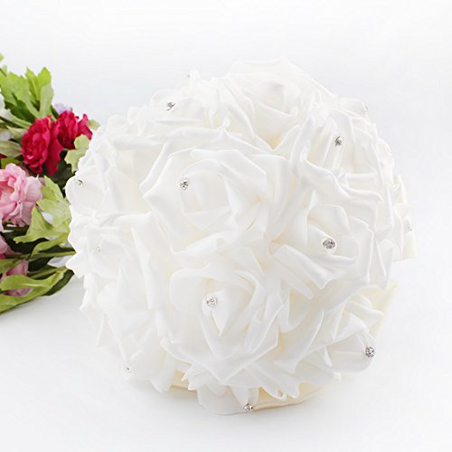 Ourwarm® ウェディングブーケ ブライダルフラワー造花 ウェディングブーケ花嫁 サイズ約23x20cm 結婚式やパーティー用ブーケ (Ivory)