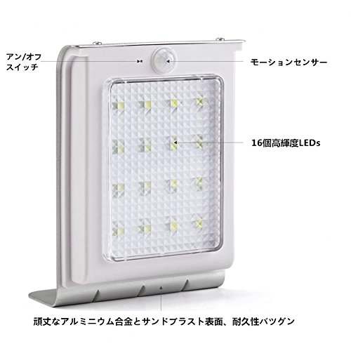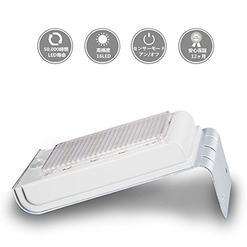 OxyLED LEDソーラーライト 人感センサー 16led 防水 門扉用 屋外 照明 壁掛け