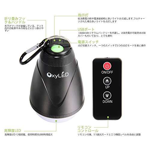 OxyLED LEDランタン キャンプライト 携帯式 防水 USB充電式 リモコン付き アウトドア 野営 登山 釣り 防災 非常用 P03