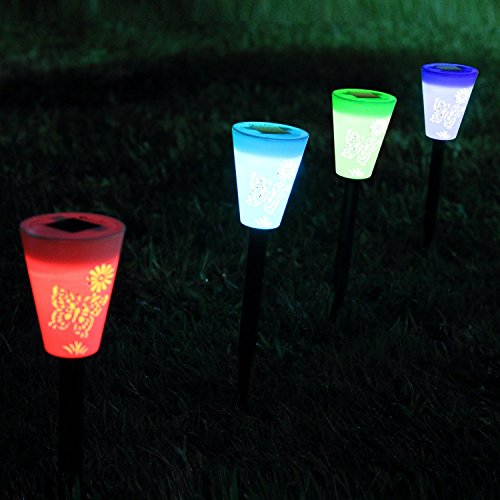 Comes with beautiful butterfly pattern, these solar garden lamps are ideal for decorating your garden, lawn, balcony, patio or path etc. Insert stakes into ground, get solar panel exposed under sunshine at daytime, then the light can provide up to 10 hours of illumination after a full charge.