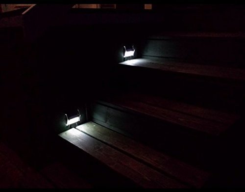 OxyLED Solar stair lights are by the sun during the day and are perfect for illuminating pathways, stairs, walkways, docks and decks. It can be easily mounted either vertically or flatly on staircases, paths, gardens, mailboxes, decks, docks and fences. Each light runs up to eight hours on a full charge, and its photocell sensor automatically turns it on at dusk and off at dawn.