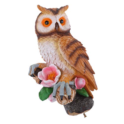 P Prettyia フクロウの置物 卓上装飾 芝生 ガーデン デコレーション 全2色 ギフト - 黄色