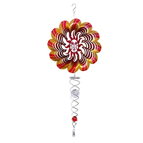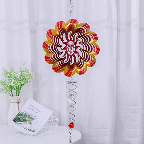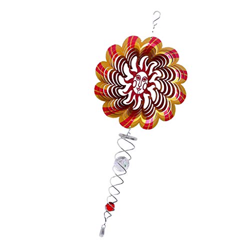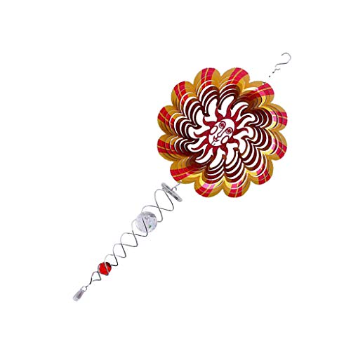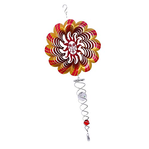 P Prettyia 風のチャイム メタルウィンドスピナー ステンレス製 3D 金属 素敵 全10色 ギフト - Sun Red