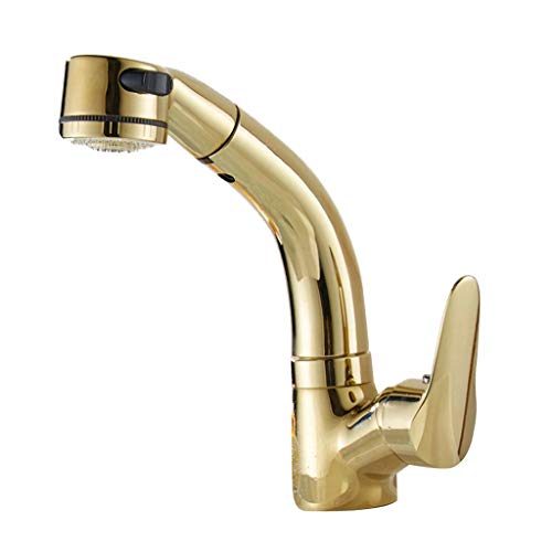 P Prettyia 360度 回転 シングルハンドル スプレーヘッド プルダウン エレガント 実用的 全3色 - ゴールデン