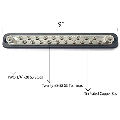- この高品質20ターミナルバスバーは、150アンペアの定格であり、12ボルトの電力および地上配電のニーズに適しています。