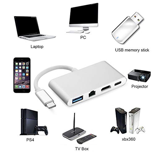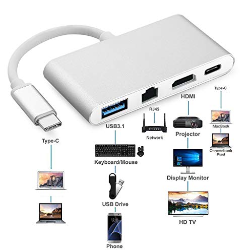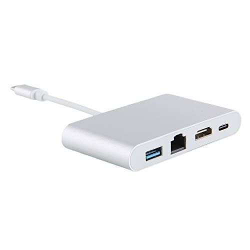 P Prettyia 4IN1 タイプC→ HDMI USB 3.0 RJ45 タイプC アダプタ USB-C コンバータ