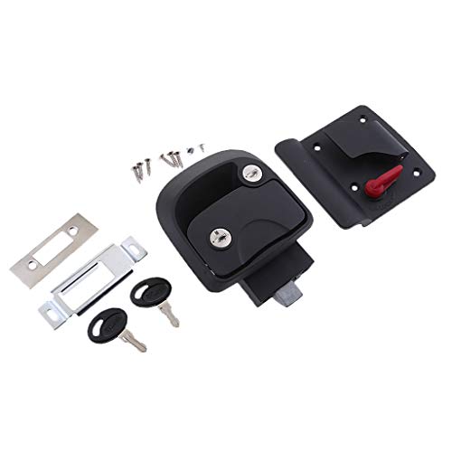 P Prettyia プルハンドルタイプ パネル ドアロック ラッチ ノブ キー アクセサリー ブラック