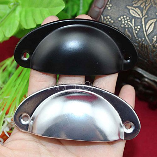 P Prettyia 10個セット アンティーク 黒 扉 キャビネット ノブ 引き出し シェル プル ハンドル カップ