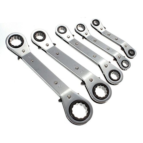 - これらのラチェット補助スパナは、ナットとボルトをすばやく締めたり緩めたりする優れた方法です。オフセット設計は、打撲や擦れたナックルの防止に役立ちます。