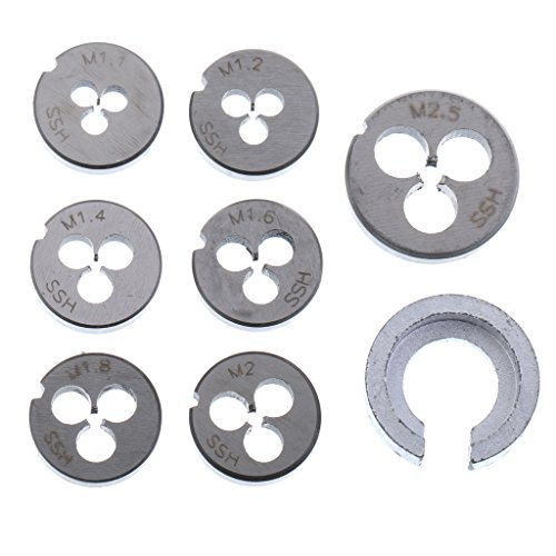 - 8個のピース(M1 / M1.1 / M1.2 / M1.4 / M1.6 / M1.8 / M2 / M2.2 / M2.5)メトリックダイスと1個ダイレンチが付属しています。