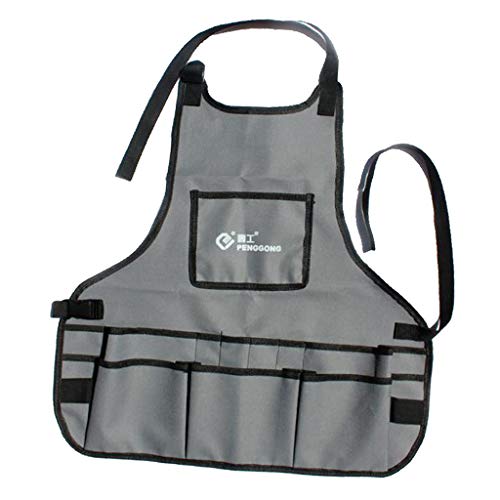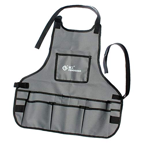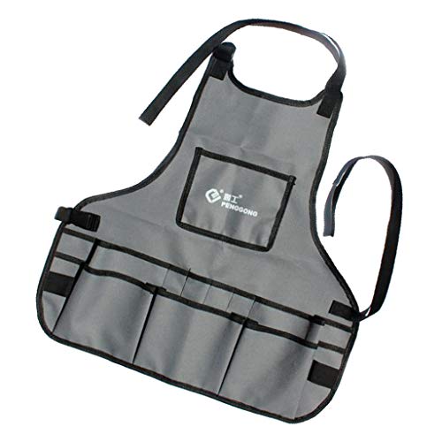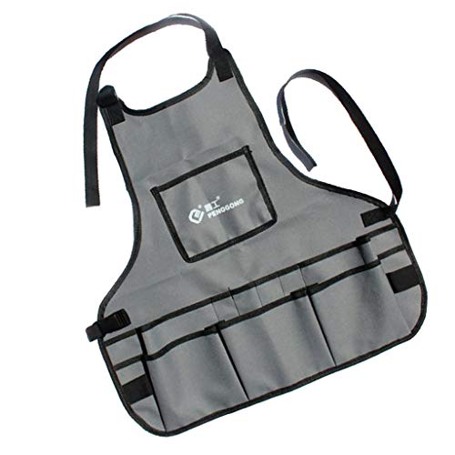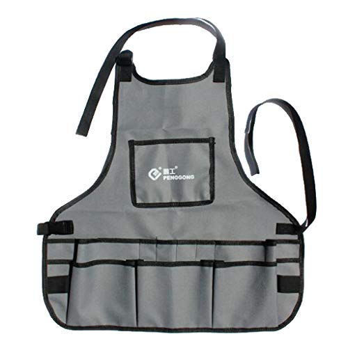 P Prettyia 約60x60cm 防水 建設作業エプロン 多機能デニムワークエプロン 全4カラー 汎用 使いやすい - グレー