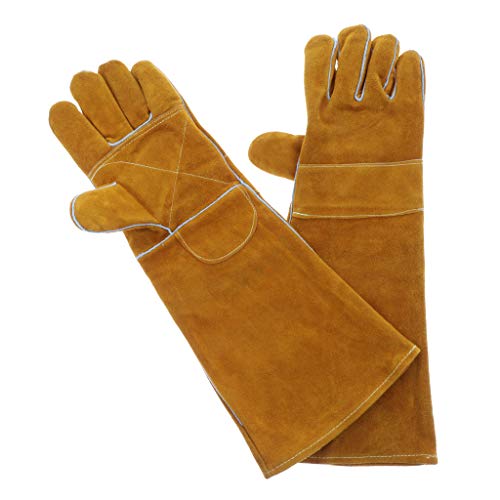 P Prettyia 牛革製 保護手袋 ヘビ トカゲ 扱う 咬合防止手袋 超長尺デザイン 超耐摩耗層