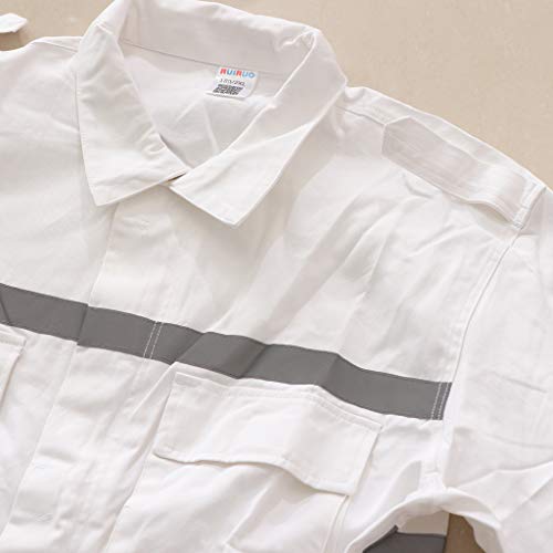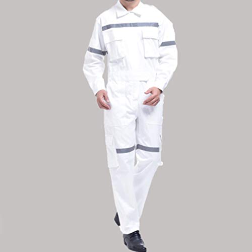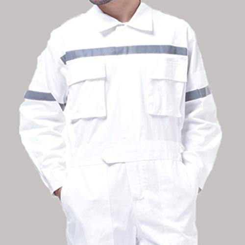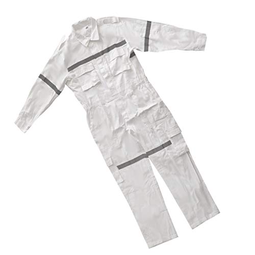 P Prettyia 修理作業員 消防 警備 セーフティスーツ 作業着 一体式 反射テープ付き 防護服 安全 ホワイト - S