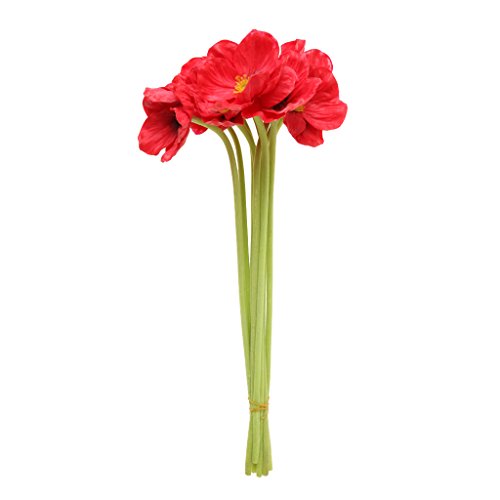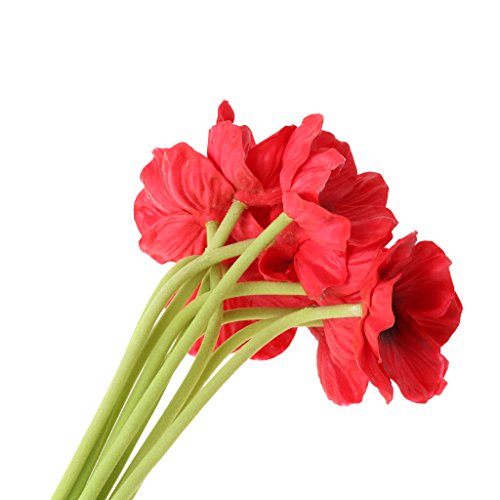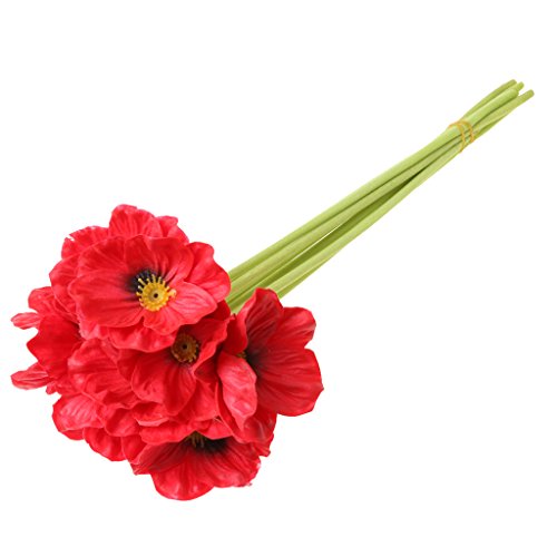 P Prettyia 全8色 10本 造花 家庭の装飾 PU 人工 ポピー 花 インテリア - 赤