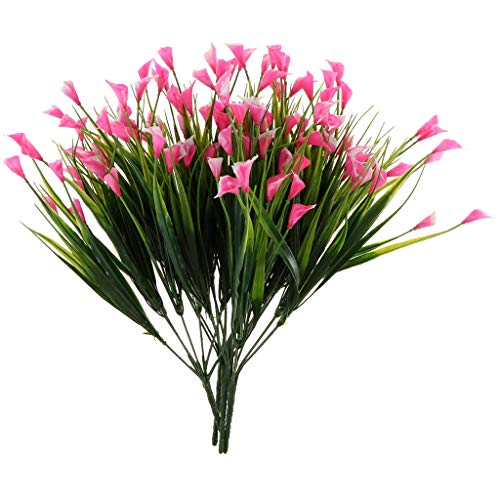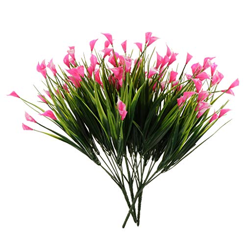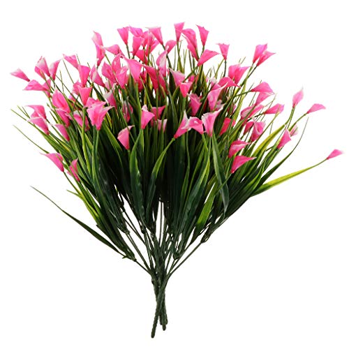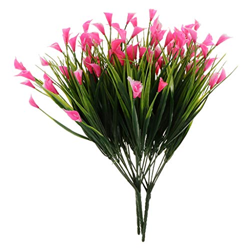 P Prettyia 綺麗な 人工カラユリ フラワー ブーケ ウェディング ホーム 花 装飾 4本 全6色 - ピンク