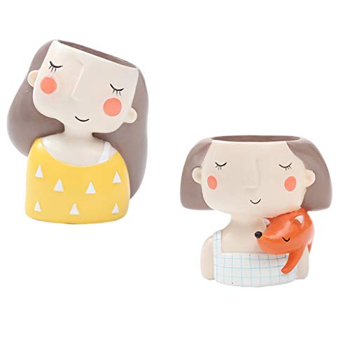 P Prettyia かわいい 女の子 プランター 盆栽ポット 植木鉢 家 装飾 多肉植物ポット 2個