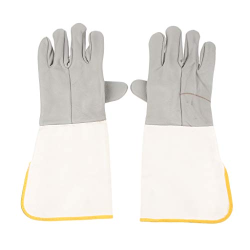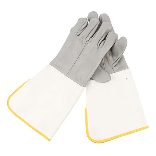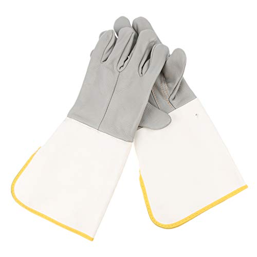 P Prettyia 革製&キャンバス製 革手袋 作業用手袋 グローブ 保護手袋 爪付き 革製手袋 高品質 約39mm