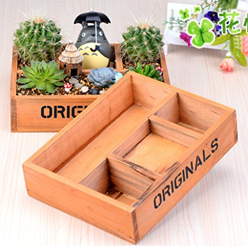 P Prettyia 多肉植物 4グリッド フラワーポット 植え鉢 花壇 木製 素朴な プランターボックス 装飾