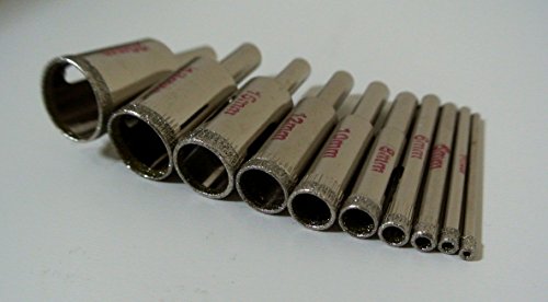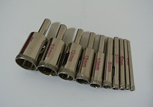 3mm ~ 20mm ガラス 用 ダイヤモンド コアビット 10サイズ セット (10本set 3-20mm)