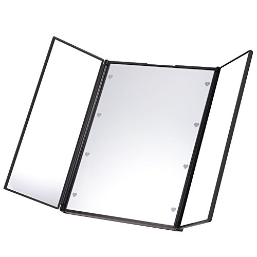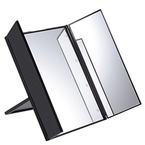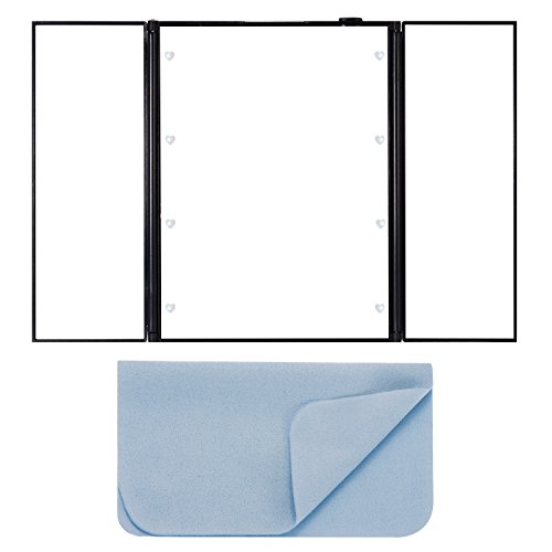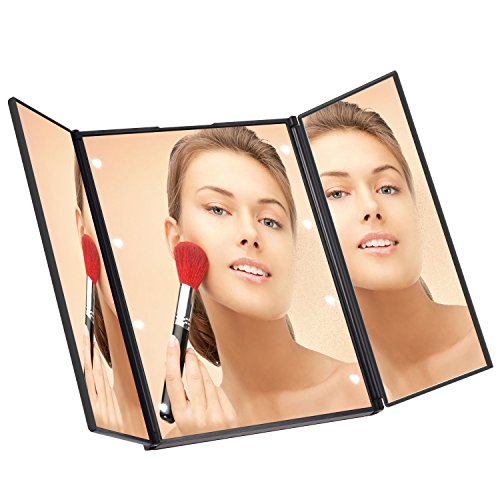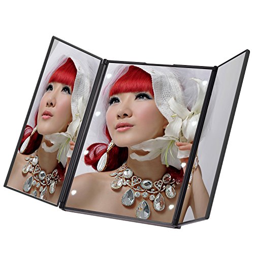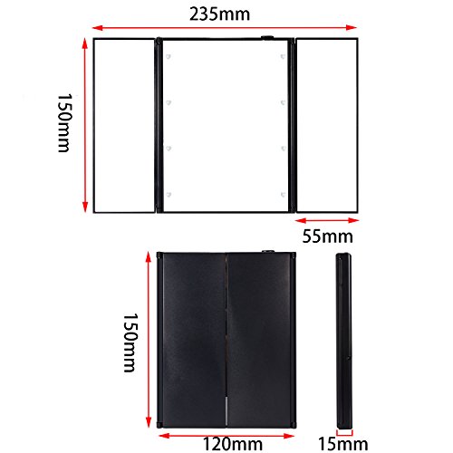 LED内蔵三面鏡、PChero 綺麗なLED付き化粧ミラー、LEDライト8灯 電池交換可能、折畳式 持ち運び便利、自由に角度調整可能 スタンドミラー、色:黒