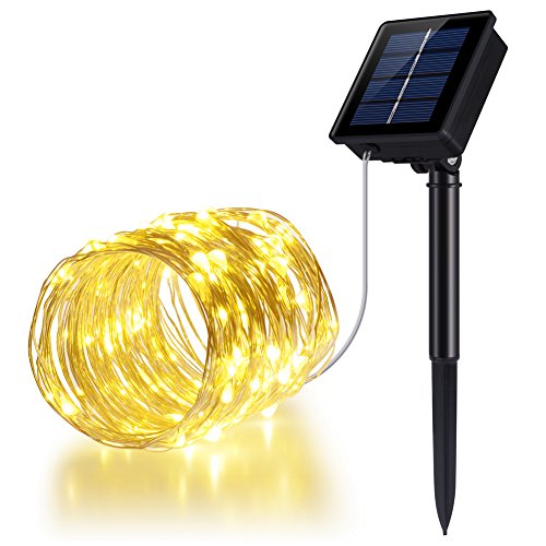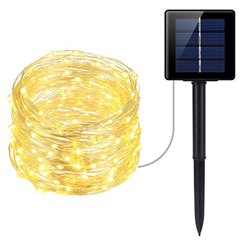 PChero ソーラーイルミネーションライト 100LED 1個セット ストリングライト ソーラー充電式 8発光モード 防水 ガーデンライト 屋外 パーティー クリスマスなどの飾りライト 電球間隔10cm クリスマス 学園祭 LED飾りライト IP67防塵/防水 (1個ウオームホワイト)