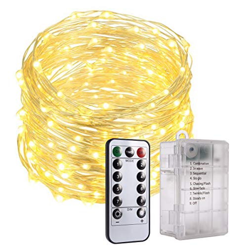LEDライト イルミネーションライト PChero 10m LED100球 リモコン操作 単3電池 防水 ストリングスライト クリスマス ツリー 飾り 屋外 室内の飾り 安全&省エネ (ウォームホワイト)