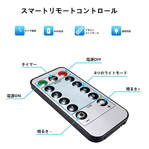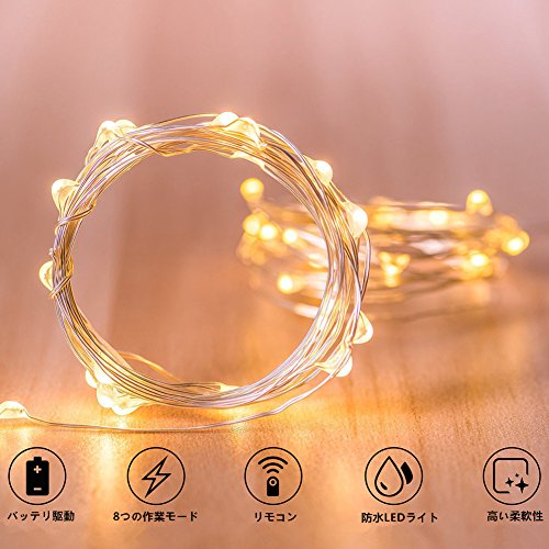 - 防水:銅線とLEDライトは防水仕様で、室外でも使用できます。リモコンは防水できません。ご了承ください。