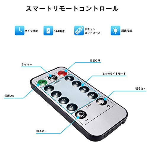 - 防水:銅線とLEDライトは防水仕様で、室外でも使用できます。リモコンは防水できません。ご了承ください。