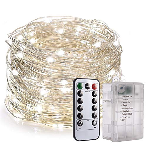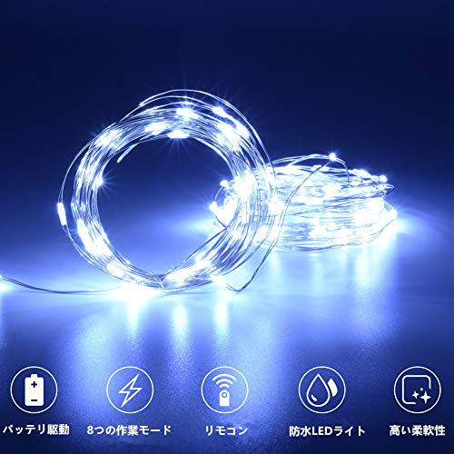 LEDライト イルミネーションライト PChero 10m LED100球 リモコン操作 単3電池 防水 ストリングスライト クリスマス ツリー 飾り 屋外 室内の飾り 安全&省エネ (ホワイト)