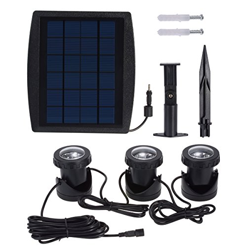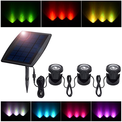 PChero ソーラーライト LEDソーラー 充電式LEDライト 屋外照明 スポットライト 3ランプ18個のLED 池のライトランプ 防水太陽エネルギーパワード 景観照明 スポットライト 自動バックライト 水底スポットライト 投影ランプ 風景ライト