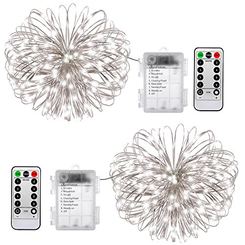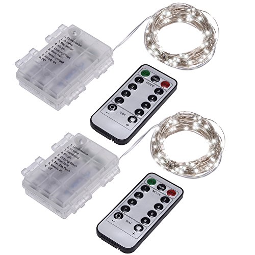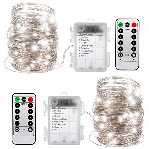 PChero イルミネーションライト led イルミネーション 電池式 クリスマス 飾りライト 5M50LED 2個同梱 ストリングライト フェアリーライト 点滅ライト 銅線 ワイヤーライト アウトドア 室内 室外 リモコン付 コンセント不要 8パタンで切替可 結婚式 パーティー 庭 防水 電池 ホワイト