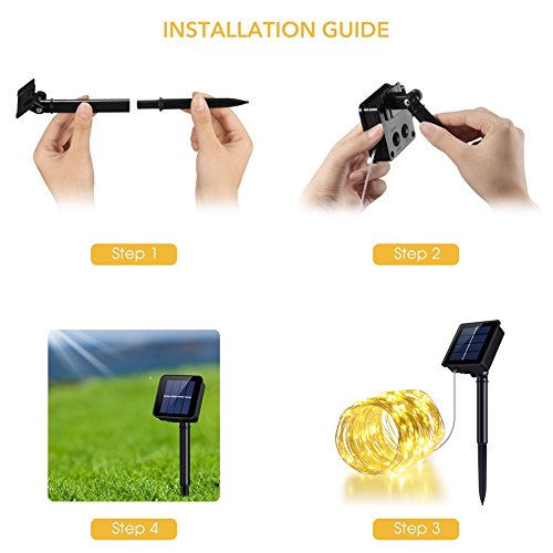 - 【省エネー・防水】ソーラー式で電気代は一切不要です。日当たりの一番良い場所に設置するだけです。パネルも銅線ライトも防水加工をされており、悪天候でもご心配なくご使用いただけます。エコな照明で、安全、省電力と環境に優しいです。