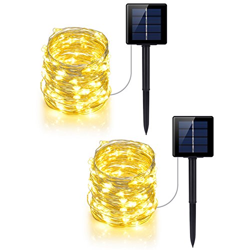 PChero ソーラーイルミネーションライト 100LED 2個セット ストリングライト ソーラー充電式 8発光モード 防水 ガーデンライト 屋外 パーティー クリスマスなどの飾りライト 電球間隔10cm クリスマス 学園祭 LED飾りライト IP67防塵/防水 (ウオームホワイト)