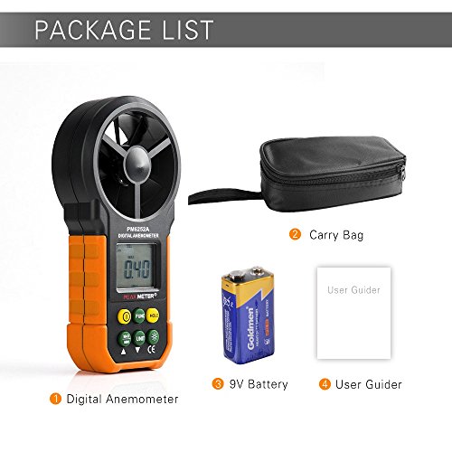 - このメーターは、風の最大/最小/通常モードの機能を備えています。データホールド、バックライト、オートパワーオフ、低バッテリーインジケータ。持ち運び用の高品質ポータブルバッグがあります