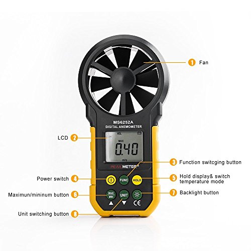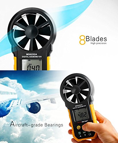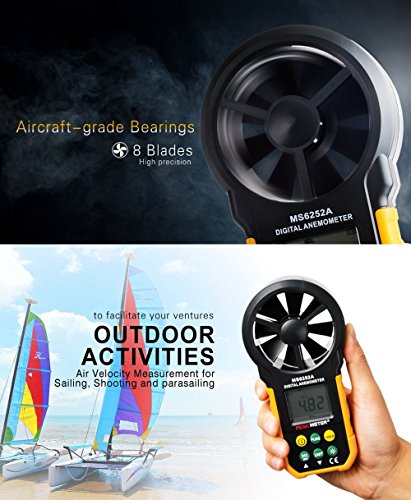 (デジタル風速計) 風の最大/最小/通常モード データホールド、バックライト、オートパワーオフ セーリング、射撃、パラシュート、ヨットのアウトドア活動用の低バッテリインジケータ 空調の修理や他の家電などに対応PEAKMETER MS6252A