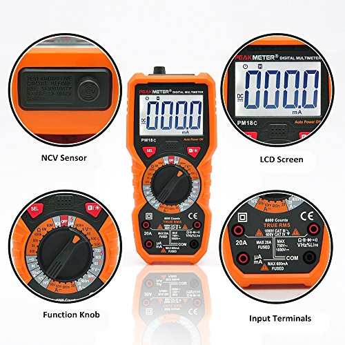 PEAKMETER PM18C デジタルマルチメータ AC / DC電圧/電流/抵抗/静電/容量/周波数/温度/hFE/NCVライブラインテスター測定