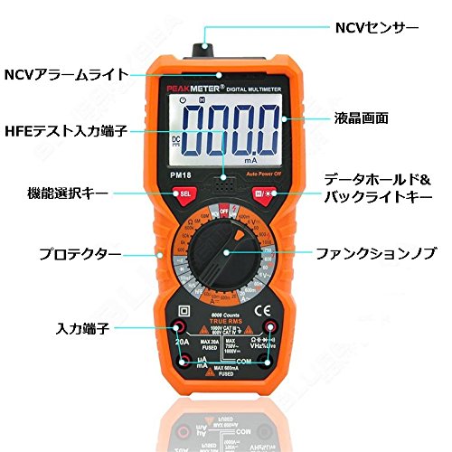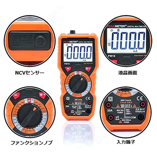 PEAKMETER PM18C 【正規品/1年保証/】 電圧 電流 デジタルマルチメーター 絶縁抵抗 テスター AC DC バックライト LCD表示 … (PM18C)