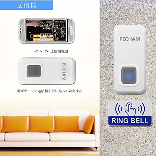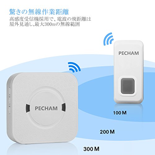 - 【驚き300M無線作業範囲】PECHAMワイヤレスチャイムは高感度受信機を採用しており、送信機の電波発送距離が驚きの約300M以上に達して、広い住宅でも使用可能です。しかもワイヤレスだから面倒な配線工事が必要なく、取り付けも簡単に設置できます。