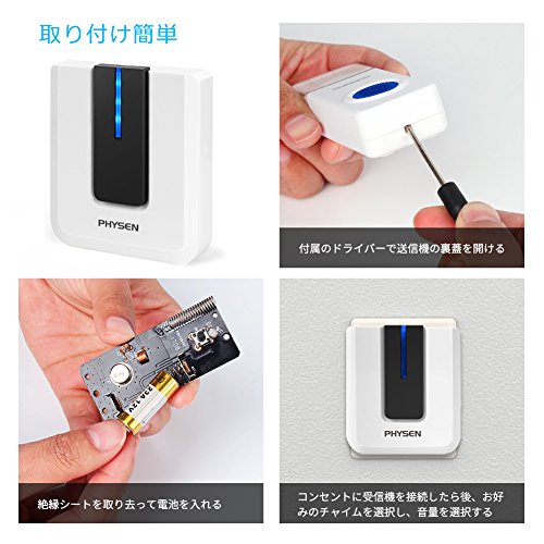 ワイヤレスチャイム PHYSENモデルA ヨーロッパスタイルのピアノ式 呼び出しチャイムセット 最高300Mの無線範囲 呼出音楽52メロディー選択可 防水 防塵 ドアベル 呼び鈴玄関 日本語取扱説明書付き (受信機1個 押しボタン送信機1個)