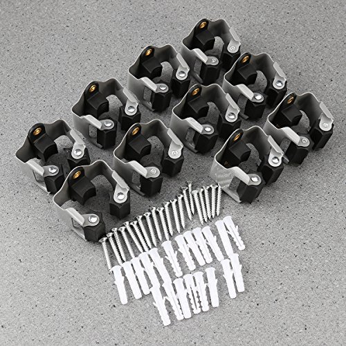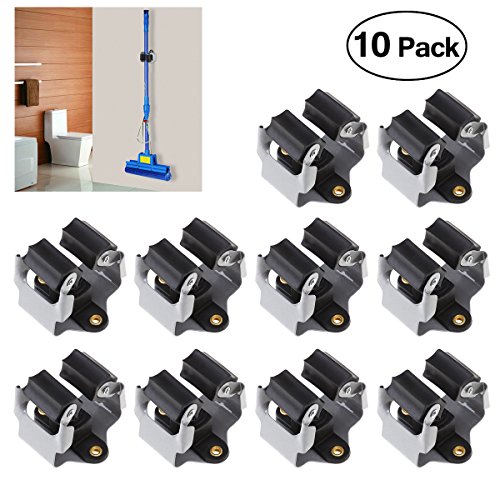 PIXNOR モップホルダー モップハンガー モップ収納ラック 壁掛けフック ローラーフック 10個入り 清掃用具収納 多機能 掃除用具ツール収納 ネジ付き (ブラック)