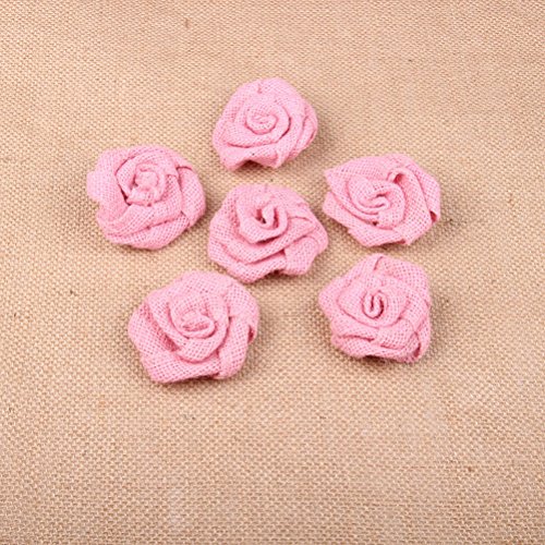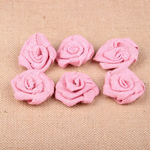 Pixnor 6個ローズフラワーヘッド結婚式装飾黄麻布ローズ花飾り(ピンク)