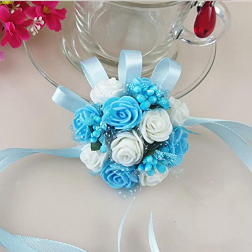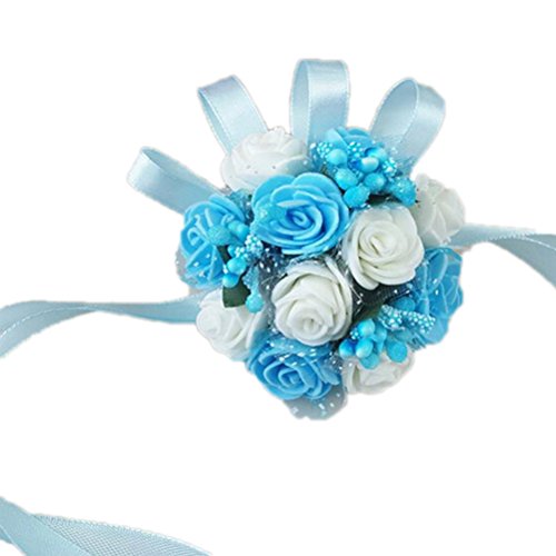Pixnorブライダルブライズメイド手首花ブレスレットFoam (ブルー+ホワイト)