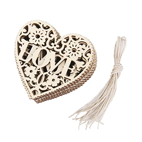Pixnor 10個入り木製ハート装飾Hanging Ornament with Strings