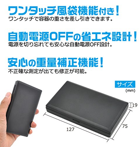 - ワンタッチ風袋機能付き!ワンタッチで容器の重さを差し引きできます。自動電源OFFの省エネ設計!電源を切り忘れても安心な自動電源OFF設計。簡易パッケージ(PP袋)でのお届けです。