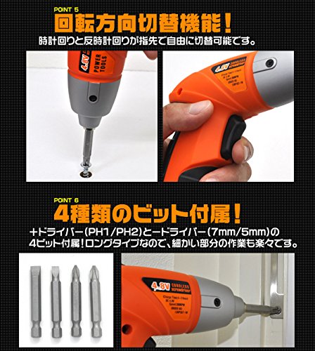 +ドライバー(PH1/PH2)と-ドライバー(7mm/5mm)の4ビット付属!