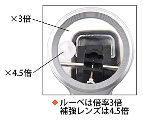 ルーペは倍率3倍、補強レンズは倍率4.5倍です。