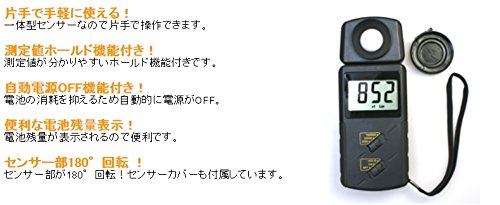 - 【測定範囲】1~100,000LUX 【精度】<10000LUX±4% >10000LUX ±5%