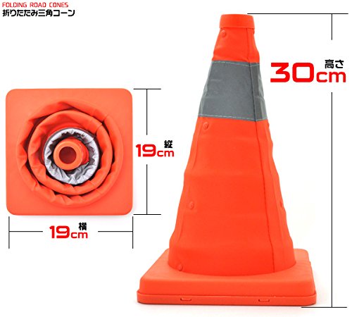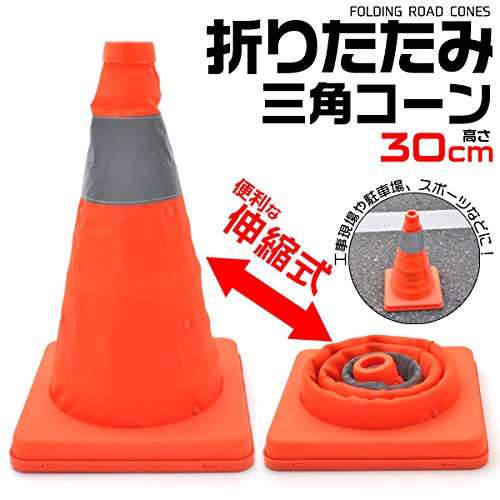 - 折りたたみ式で使いやすい三角コーン(ロードコーン)! 必要のない時は折り畳んで収納できるので、万が一の事故に備えて車に常備しておくと便利です。