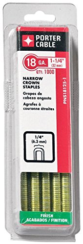 The PORTER-CABLE PNS18125-1 1-1/4-Inch, 18 Gauge Narrow Crown (1/4-Inch) Staple is galvanized coated with chisel point tips. Designed to be used in Porter Cable: NS150B / and DEWALT?: D51422K. Can also be used with HITACHI: N3804AB, N3804AB2 / SENCO: SKS, SLS18, SLS20XP, SLS25XP / RIDGID: R150FSA. 1,000 staples per pack / 100 staples per stick.